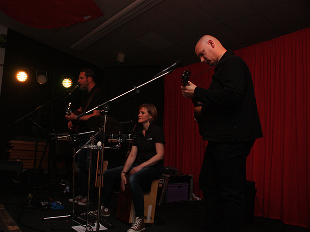 Als unsere ehemalige Cajon-Spielerin Claudia nach einigen Jazzkonzerten mit frischen Ideen um die Ecke kam tauschten wir kurzerhand mal die Instrumente und ich stellte fest: Cajon spielen machte Spaß! So bin ich bei diesem Instrument geblieben und begleite Ralf und Thomas zusätzlich mit Backroundgesang.